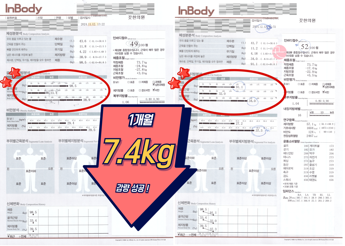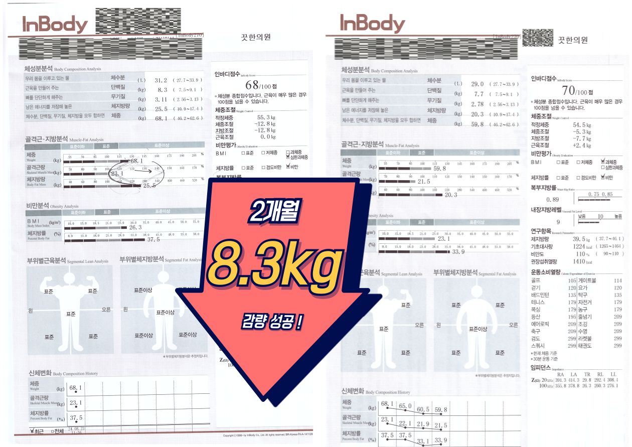 38세 남성 핏 다이어트 1개월 프로그램 전후 인바디